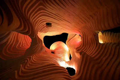 Project Management, Detail Design, On- Site Supervision Architects: Softroom, London Engineers: Atelier One, London Info: Six sqm walk-in solid timber structure inspired by Namibian termite mounds